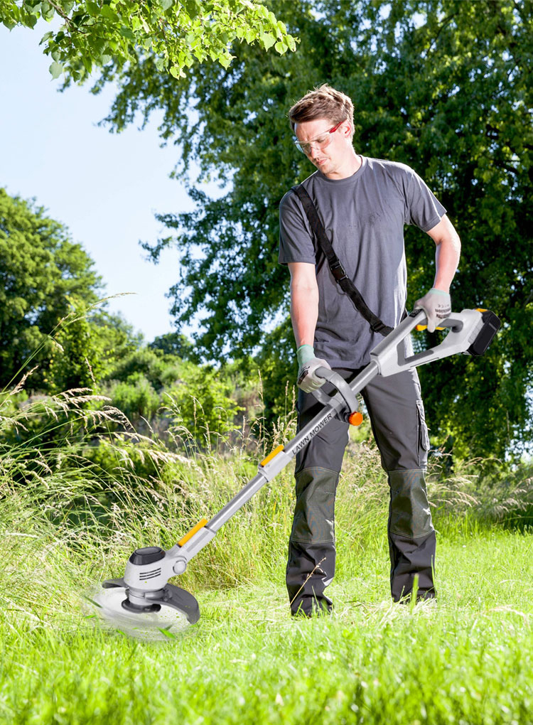 Grass Strimmer cordless , Brush Cutter Electric And Grass Edge Trimmer Three In One , Includes 1 x Nut Spanner ,1 x Dual Purpose Screwdriver ,1 x Grass Stopper, 1 x Goggles, 4.0Ah Batteries And Charger, 5 x Plastic Blades, 2 x Steel Lancet, 2 x Circular Saw Blades,10 x Double Wicker Nylon Blades (easier To Change Blades),20 x Nylon Trimming Lines 1 x Cordless Strimmer And 90° Swivel Head And Telescopic Handle, Side Wheels And Auxiliary Glide With Power Digital Display.