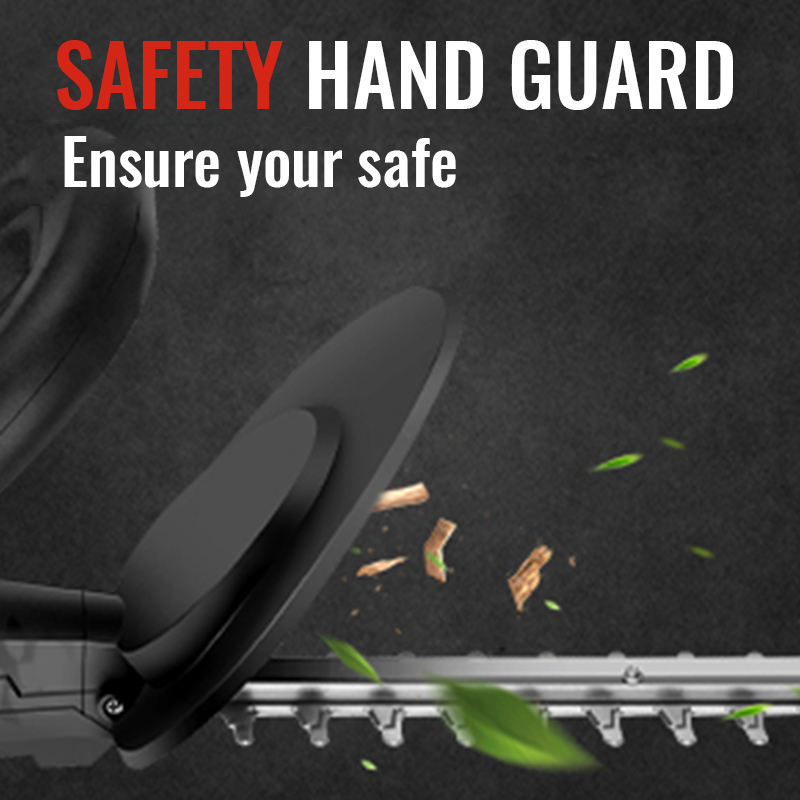 Fitted with an integrated hand safety guard the electric hedge trimmer also uses a 2 stage safety start trigger system. The Lawnora hedge trimmer also stops immediately when you let go of the trigger, meaning if dropped the machine stops instantly.